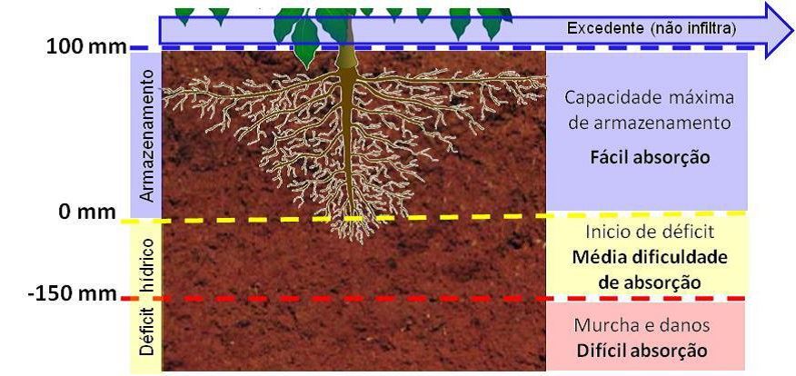 Ilustração produzida pela Fundação Procafé, apontando os diferentes níveis de de armazenamento de água no solo